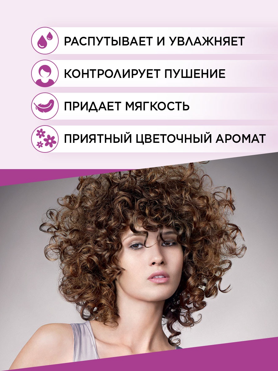 Входящие в состав гидролизат пшеничного белка, масла монои и кокоса создают увлажняющий барьер, придают мягкость, распутывают и контролируют пушение вьющихся волос.