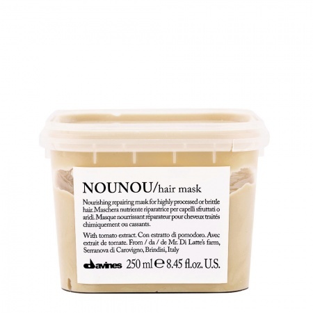 Главный активный ингредиент состава «NOUNOU/hair mask» от производителя Davines – это экстракт томата. Это вещество отлично защищает от солнечных лучей, является мощным антиоксидантом. Экстракт томата прекрасно увлажняет, глубоко обогащает полезными элементами пряди и кожу головы, восстанавливает структуру волоса по всей длине. В результате Вы получаете оживленные, блестящие, красивые и здоровые волосы. Для лучшего эффекта рекомендуется использовать после шампуня из этой же серии.