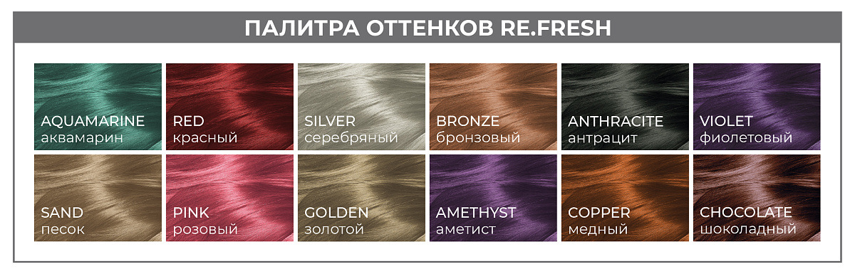 оттеночные маски нового поколения с великолепной кондиционирующей, увлажняющей и восстанавливающей основой, кислым уровнем pH и повышенной стойкостью цвета. Придает натуральным, окрашенным или осветленным волосам оттенок и великолепный внешний вид. В палитре color re.fresh 12 оттенков – 8 классических и 4 фантазийных – все оттенки смешиваются между собой и могут быть использованы для создания неограниченного количества индивидуальных колор коктейлей.