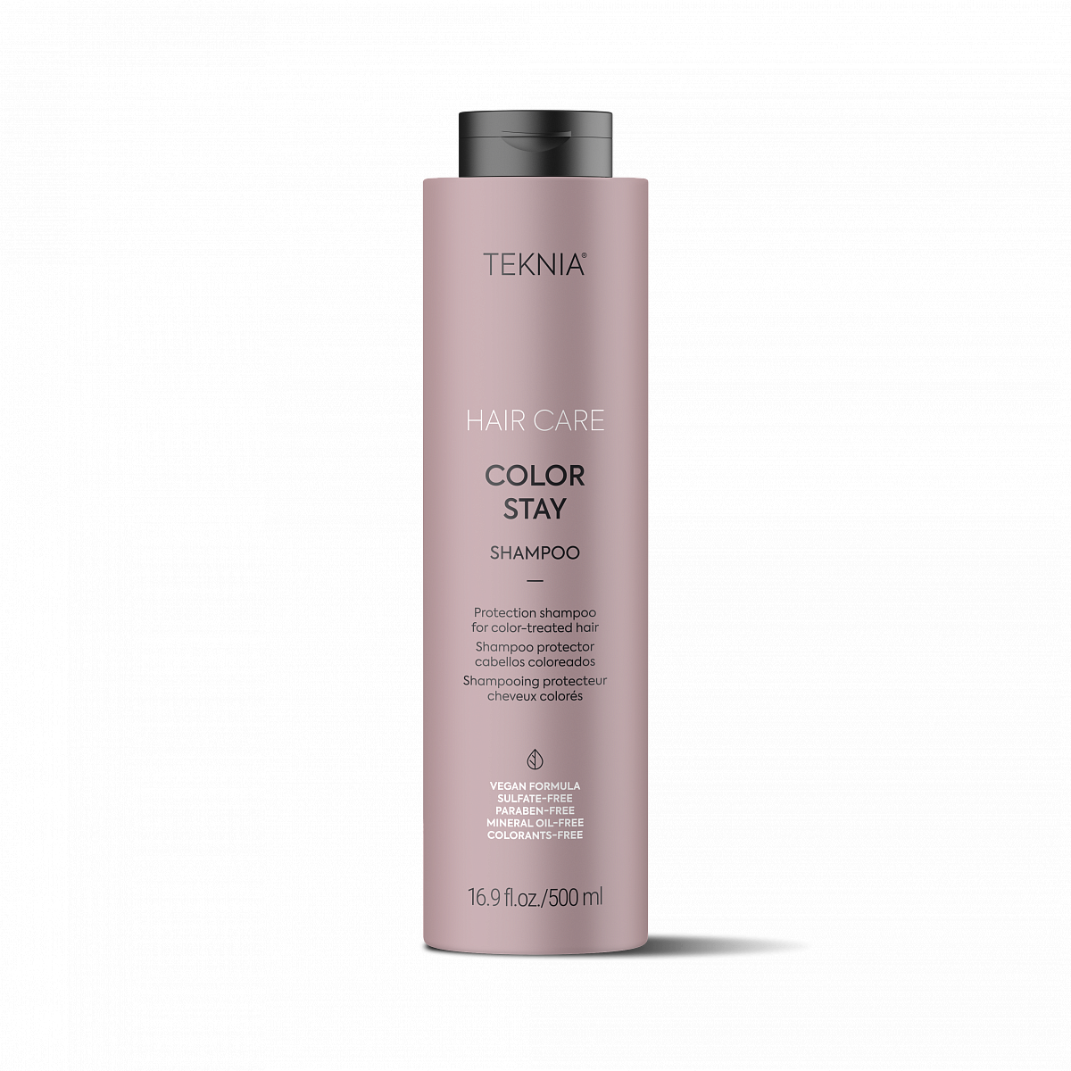 Шампунь серии COLOR STAY обеспечивает деликатное очищение и препятствует вымыванию пигментов, продлевая стойкость и интенсивность оттенка окрашенных волос.