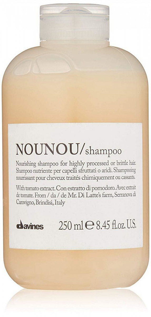 Находитесь в поиске шампуня, который деликатно очистит от загрязнений и восстановит тусклые, поврежденные пряди? Поможет решить эти и другие проблемы «NOUNOU Shampoo» от известного итальянского производителя профессиональной косметики Davines. Главный активный ингредиент «Питательного шампуня для уплотнения волос» – это экстракт томата. Данное вещество активно защищает локоны от УФ-излучения, а значит, средство идеально подойдет для использования в летний период. Помимо этого, экстракт является мощным антиоксидантом, интенсивно питает и увлажняет как волосы, так и кожу головы, придает прядям легкость, объем, заметно улучшая внешний вид. Подходит для всех типов волос. Без сульфатов и парабенов. Для лучшего результата после использования шампуня рекомендуется применять бальзам из этой же линейки.
