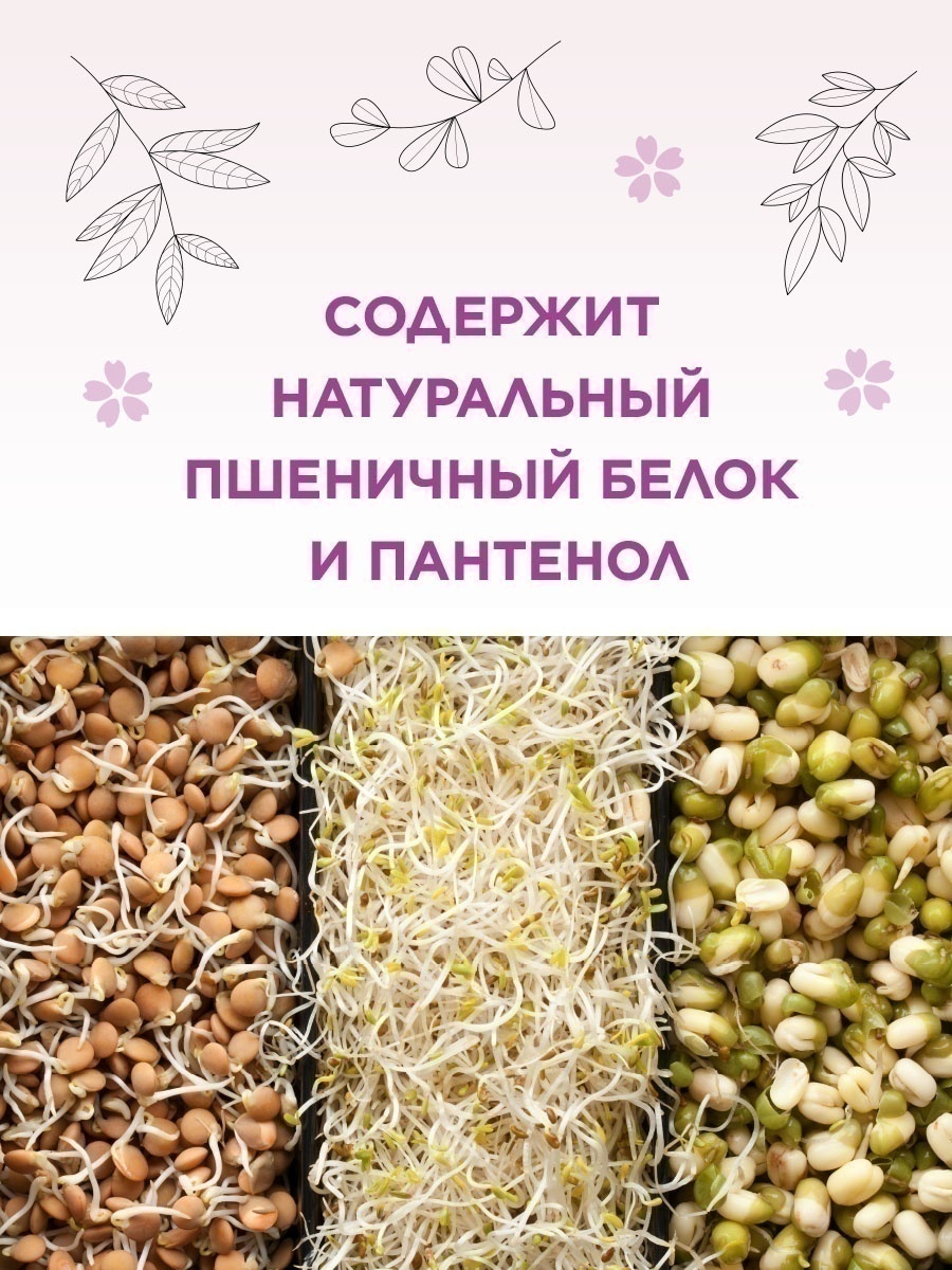 Входящие в состав активные ингредиенты нежно очищают и увлажняют волосы. Гидролизат пшеничного белка и пантенол восстанавливают мягкость непослушных, вьющихся или объемных волос.