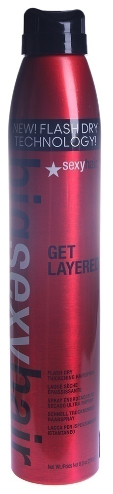 Лак высыхает мгновенно, поэтому может использоваться для создания послойных укладок. Get Layered легко вычесывается, не оставляет на волосах характерного налета.