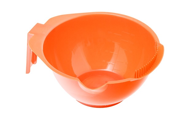 Парикмахерская миска с делениями для смешивания краски и других химических компонентов объемом 300мл. На дне имеется резиновая вставка, предотвращающая скольжение.