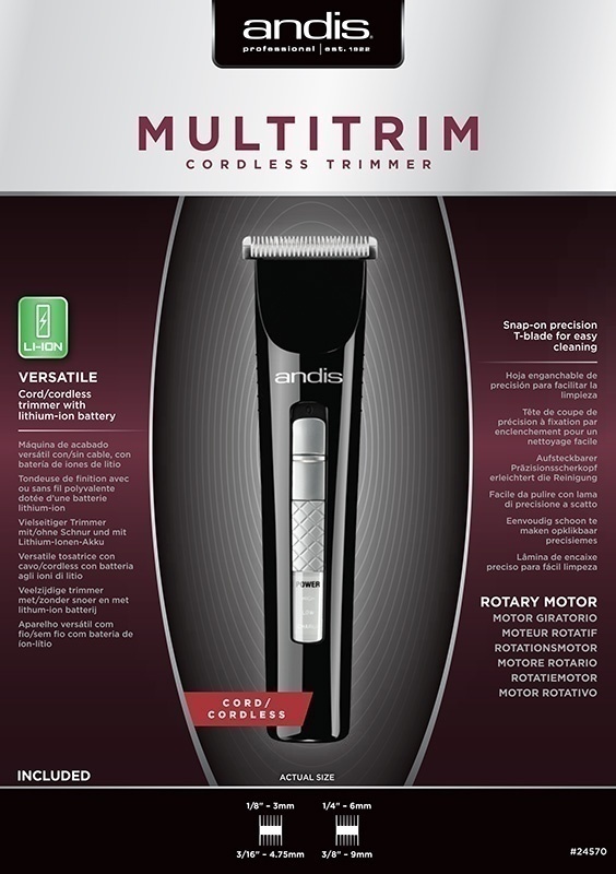 Аккумуляторно-сетевая окантовочная машинка для стрижки волос MultiTrim CLT, Andis