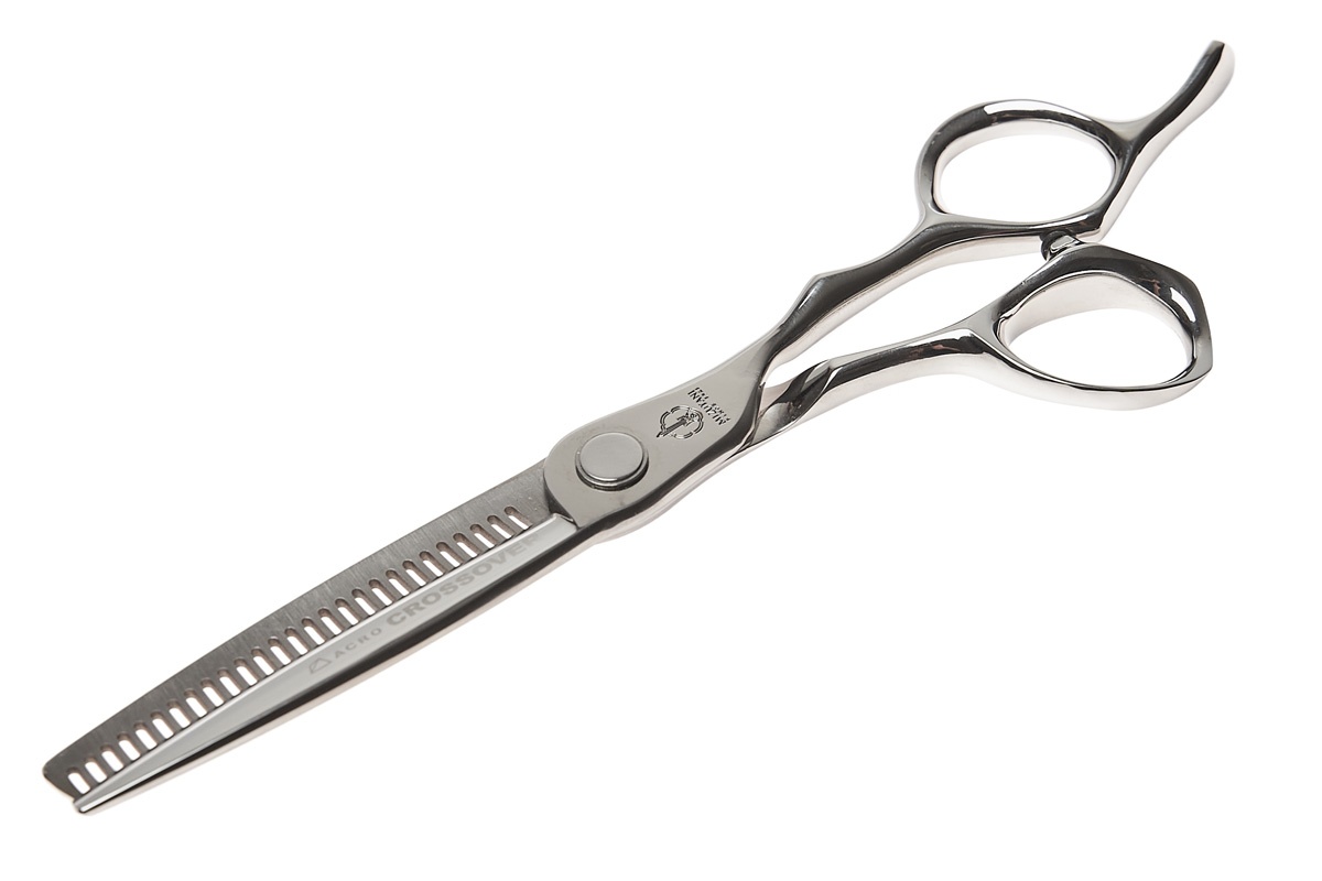 Режущие полотна особой формы с более массивным филировочным полотном, несущим 27 зубцов особой формы, и аккуратным режущим полотном, снимают 20-25% волос за один «шаг». Ножницы ACRO CROSSOVER THINNING USUBA позволяют очень деликатно доработать стрижку без опасения снять лишнее и испортить работу. Дугообразная форма зубцов обеспечивает мягкий выход полотна при стрижке длинных волос. Полотна соединяются с помощью оригинальной винтовой системы, оснащённой регулировочной системой Mini Click с надёжным подшипником довольно большого размера.