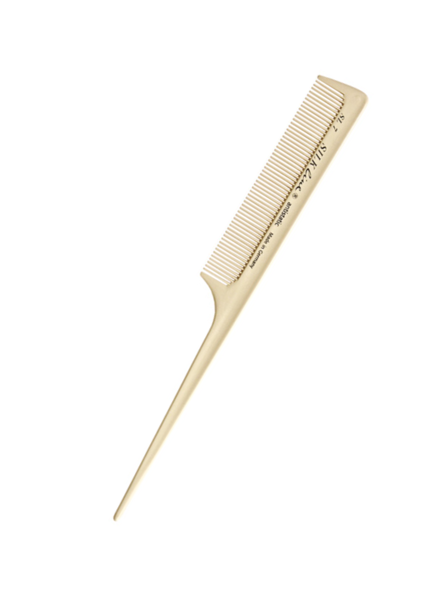 Расческа длиной 20,3см из силикона с ручкой-хвостиком отличается легким, гладким скольжением, а также обладает высокой прочностью, гибкостью, устойчивостью к тепловым и химическим воздействиям.