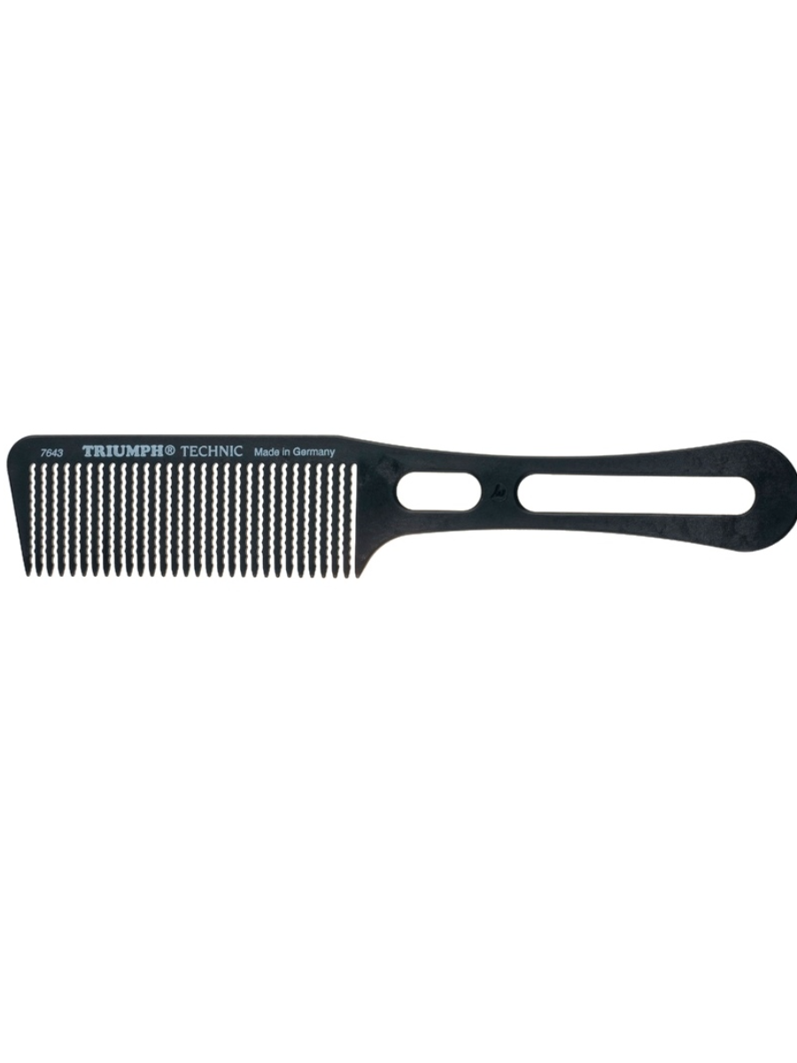 Профессиональная расческа Triumph Master 97-7643M с удобной ручкой и крупными волнистыми зубцами, предназначена для стрижки по машинку. У расчески плоский корпус и длинные зубцы, для удобства на обушке нанесена линейка. Пластиковые расчёски Triumph Master отлиты в формах высшего качества и поэтому они не имеют неровных краев и заусенцев, которые могут повредить волосы. Используемые при их производстве полимеры: поликарбонат и полиоксиметилен (ПОМ) полностью отвечают требованиям высочайшего качества.