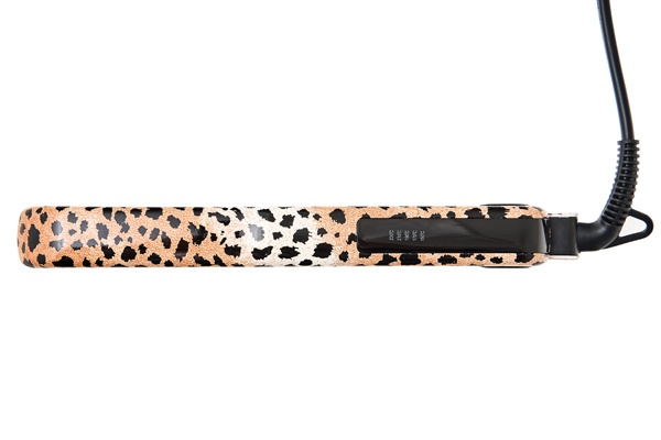 Щипцы для выпрямления волос в классическом корпусе, украшен ярким анималистическим принтом.