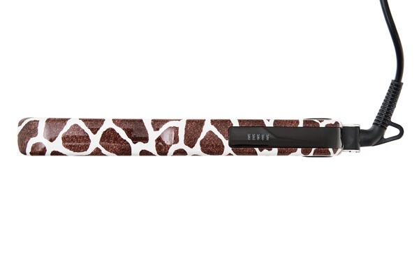 Щипцы для выпрямления волос в классическом корпусе, украшен ярким анималистическим принтом.