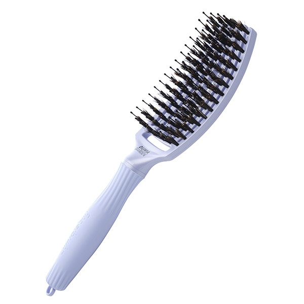 Fingerbrush Care Iconic Boar&Nylon - щетка для волос с натуральной щетиной и ионизированными нейлоновыми щетинками с шариковыми наконечниками, которые делают волосы более блестящими, гладкими и шелковистыми. Кроме того, внешняя поверхность щётки имеет изогнутый дизайн, повторяющий форму головы. Это позволяет создавать больший объём от корня, лучше контролировать натяжение локона при укладке и создавать великолепные причёски.
