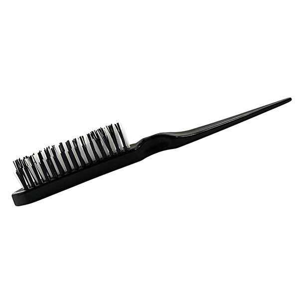 Щётка для начёса из пластика с жёсткой нейлоновой щетиной. Заостренная ручка в виде хвостика удобна для отделения прядей.
